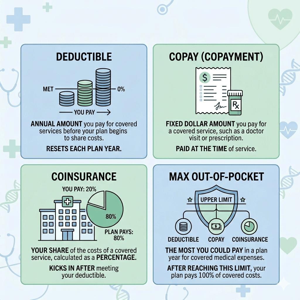 Deductibles, Copays, Coinsurance, Max Out-of-Pocket: Making Sense of the Costs - Health insurance isn’t just about having a plan – it’s about knowing what your coverage really costs and how much you could end up paying upfront. Without a clear picture of your deductible, copays, coinsurance, and maximum out-of-pocket, surprise medical bills can quickly throw your budget off track. Understanding these four terms can make a […]